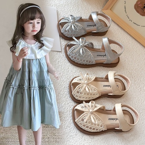 2025 Xu Hướng Mới Mùa Hè Bé Gái Dép Ngọt Ngào Bow Công Chúa Giày Thoải Mái Đàn Hồi Mềm Duy Nhất Cô Gái Bãi Biển Dép Trẻ Em